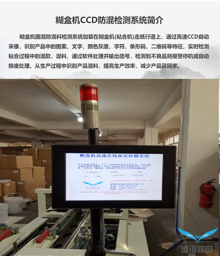 在包裝盒糊粘過(guò)程中出現(xiàn)混料、混款、印刷缺陷的問(wèn)題是通過(guò)糊盒機(jī)加裝視覺檢測(cè)系統(tǒng)對(duì)表面圖文字符比對(duì)、條形碼/二維碼識(shí)別,色塊識(shí)別等方式實(shí)現(xiàn)防混及漏印檢測(cè)。