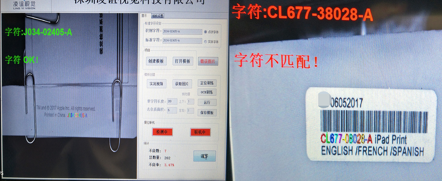本字符識別系統(tǒng)常用于配合產(chǎn)品外包裝或產(chǎn)品說明書單頁上的字符識別防混,通過對料號字符的識別實現(xiàn)防止錯料混料的發(fā)生。系統(tǒng)可適用于手工線或自動線,具有識別速度快、準確率高的優(yōu)點,有助于提高客戶良品率及生產(chǎn)效率。杜絕不良品流出導(dǎo)致的產(chǎn)品召回。